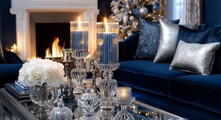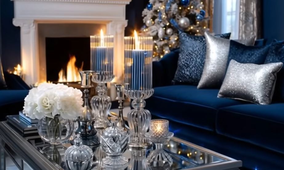 Crystal touches are everywhere, from sparkling ornaments and icicle-like decorations on trees, to cut-glass candle holders and reflective tabletop pieces. These pieces not only add shimmer but also help bounce warm lighting around the room, giving even small spaces a “Winter Wonderland” feel. Outdoor Indoors